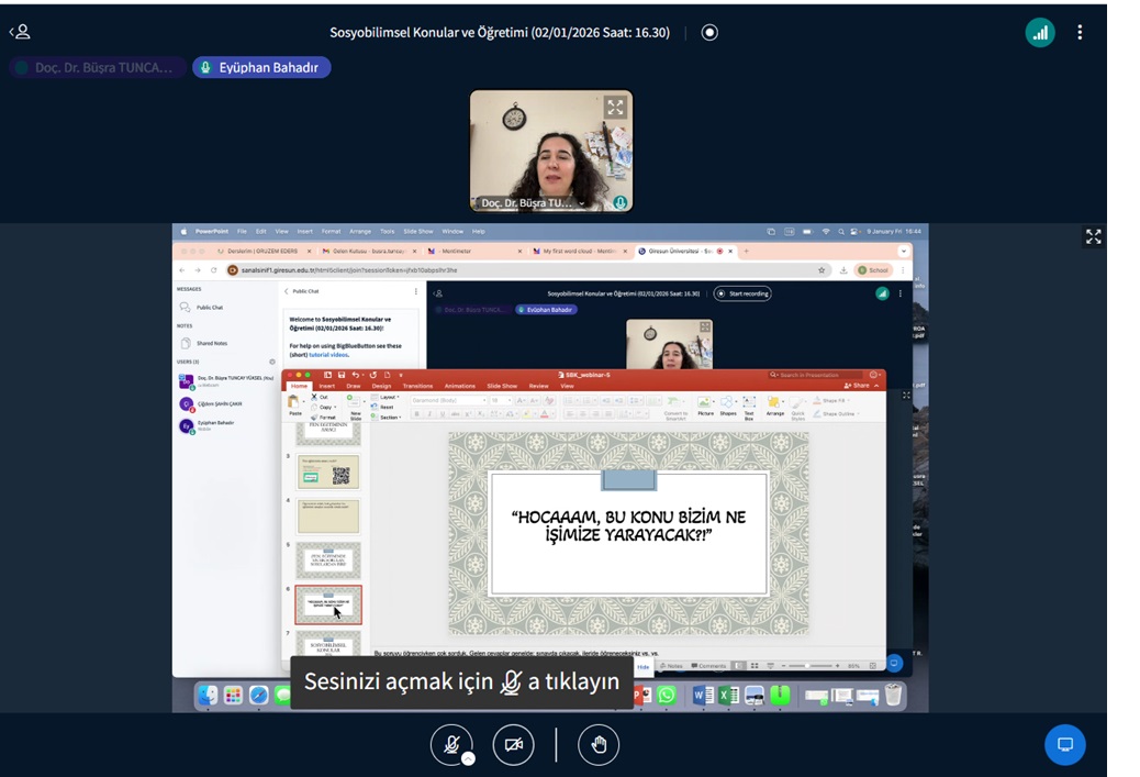Fen Bilgisi Eğitimi Ana Bilim Dalı öğretim üyelerinden Doç. Dr. Büşra TUNCAY YÜKSEL tarafından, mezun öğrencilere yönelik “Sosyobilimsel Konular ve Öğretimi” konulu bir seminer gerçekleştirilmiştir.