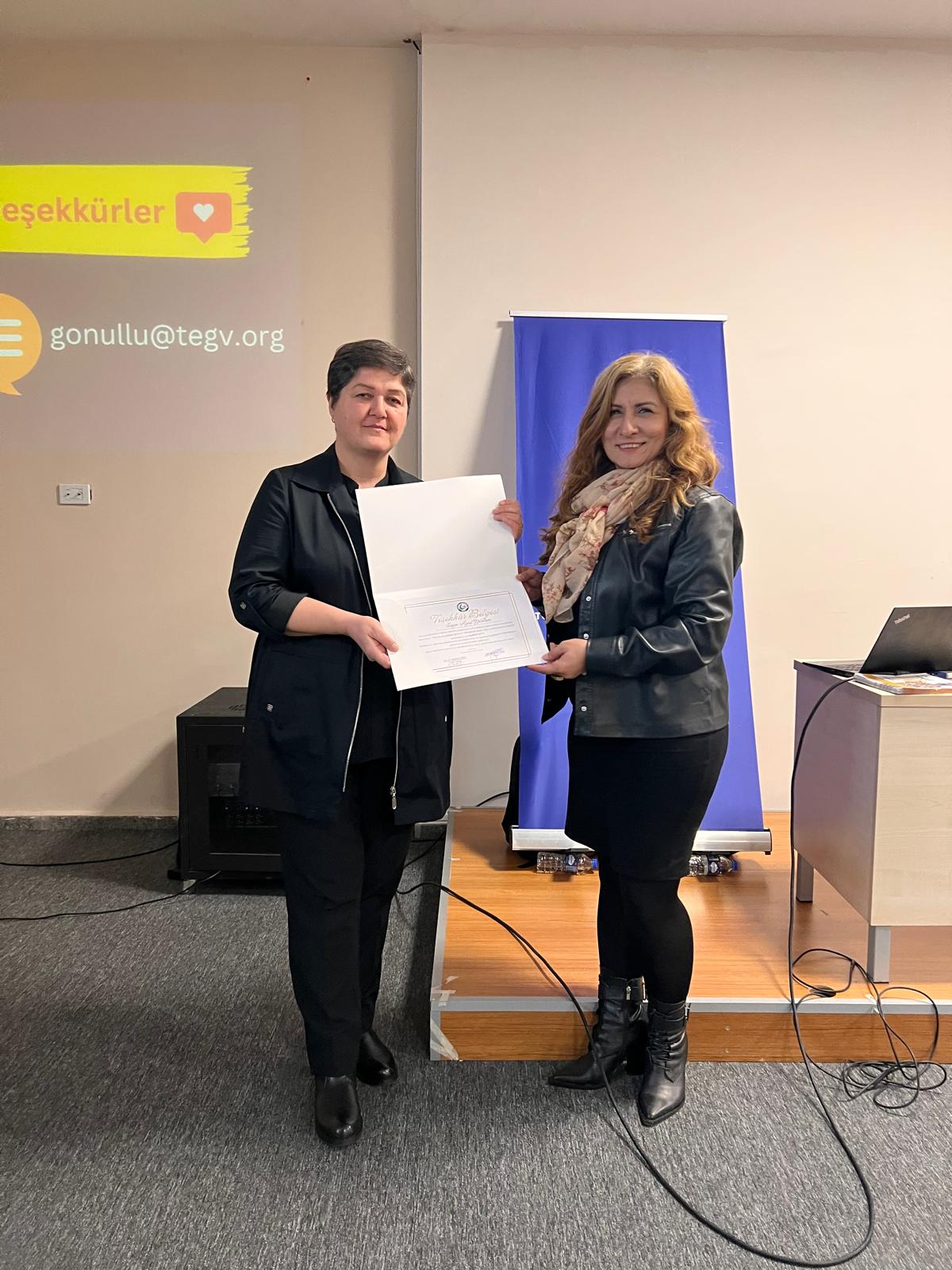 Seminer sonunda, katkılarından dolayı Can Kantaş’a teşekkür belgesi Fen Bilgisi Eğitimi Ana Bilim Dalı Başkanı Prof. Dr. Çiğdem Şahin Çakır tarafından, Aysel Yıldırım’a ise teşekkür belgesi Fen Bilgisi Eğitimi Alan Bilim Dalı öğretim üyesi Dr. Öğr. Üyesi Öznur Ölmez Nalcıoğlu tarafından takdim edildi.