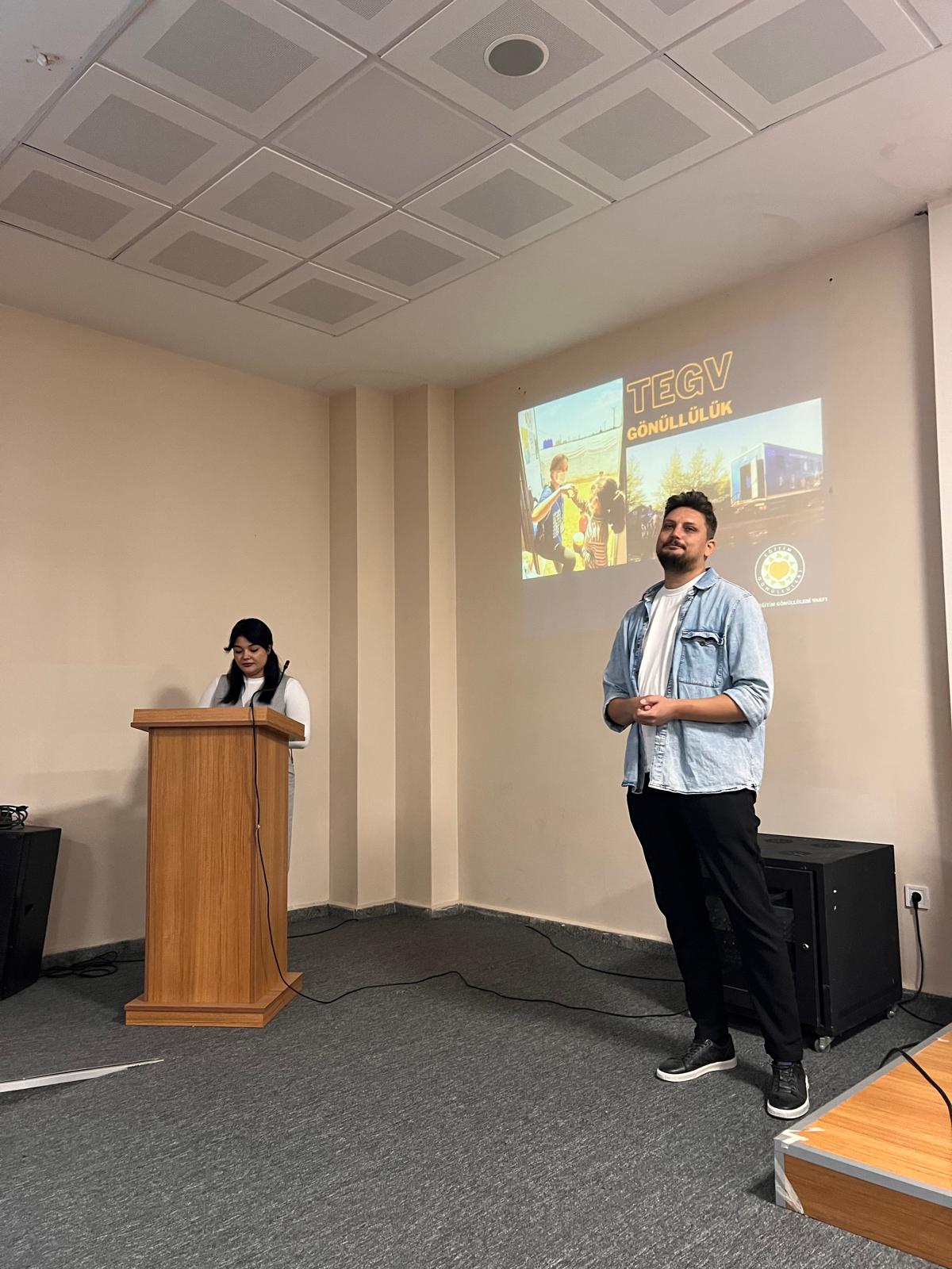 Seminerin konuşmacıları, TEGV Gönüllü Operasyonları Uzmanı Can Kantaş “TEGV & Gönüllülük Kültürü” başlıklı sunumuyla gönüllülüğün önemi ve TEGV’in ülke genelindeki gönüllülük faaliyetleri hakkında bilgiler paylaşırken; Giresun TEGV Öğrenim Birimi Yöneticisi Aysel Yıldırım ise “Giresun TEGV Faaliyetleri” başlıklı konuşmasında Giresun’daki gönüllülük çalışmalarını ve öğrencilere yönelik yürütülen projeleri tanıttı.