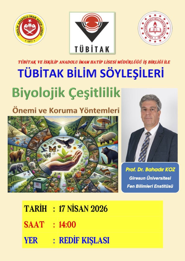 Fen Bilimleri alanında toplumsal farkındalığı artırmayı amaçlayan TÜBİTAK Bilim Söyleşileri kapsamında, “Biyolojik Çeşitliliğin Önemi ve Koruma Yöntemleri” başlıklı bir söyleşi gerçekleştirilecektir.